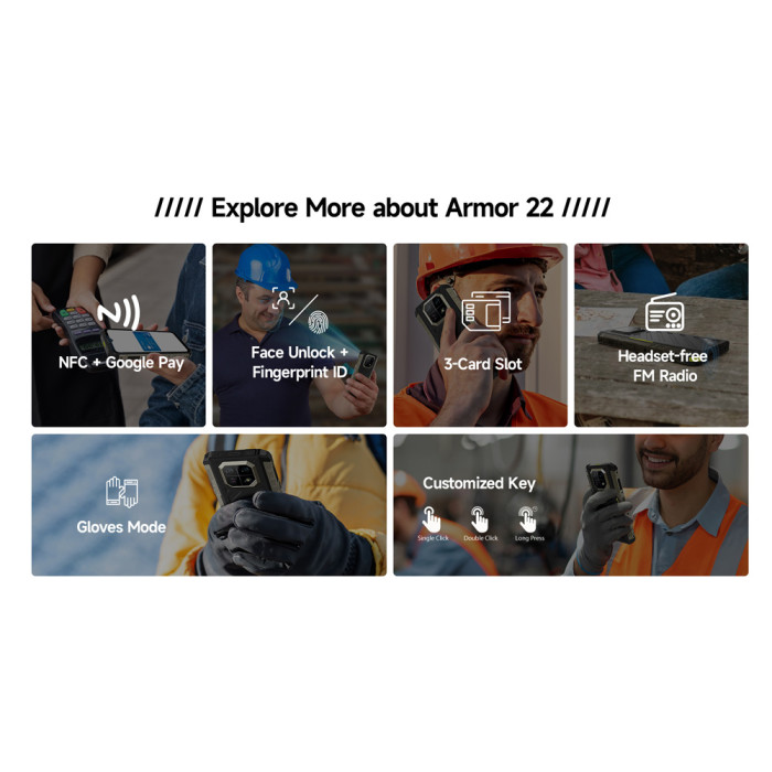Με πιστοποίηση IP68/IP69K και πρότυπο MIL-STD-810H, το Armor 22 είναι σχεδιασμένο για να αντέχει σε ακραίες συνθήκες χρήσης και περιβάλλοντα.
