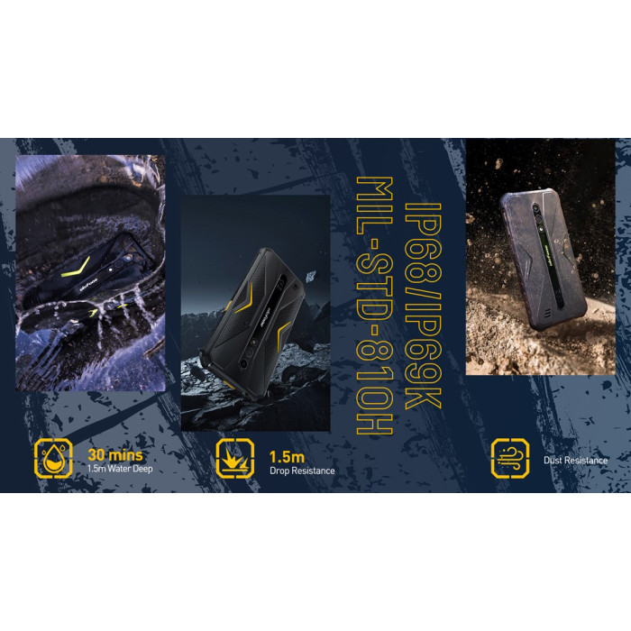 Rugged: Rated IP68 (maximum depth of 1.5 metres up to 30 minutes) under IEC standard 60529, Rated IP69K under IEC standard 60529, MIL-STD-810H Certification