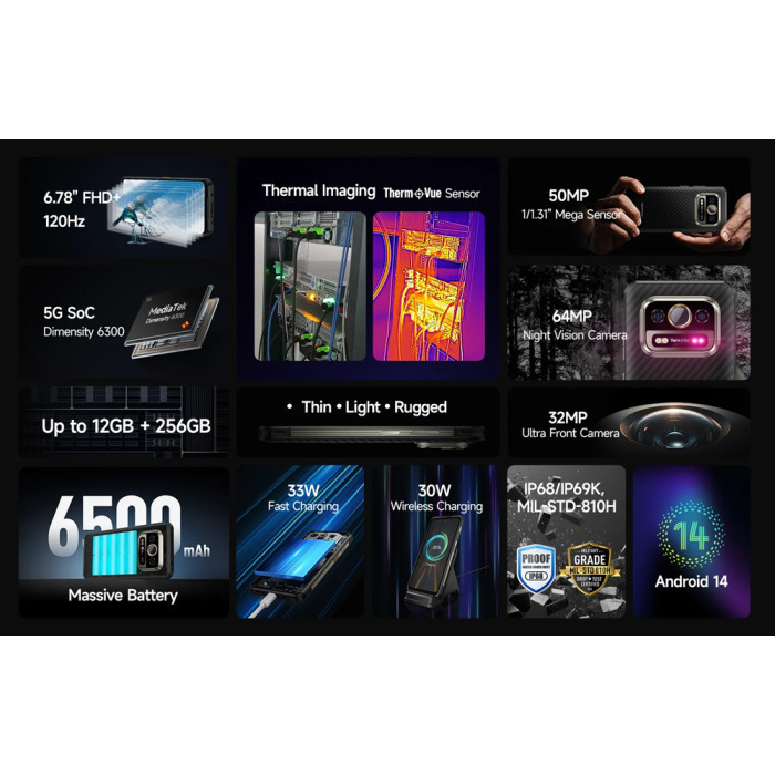 ULEFONE smartphone Armor 25T Pro, 6.78", 6/256GB, 5G, 6500mAh, IP68/IP69K, μαύρο