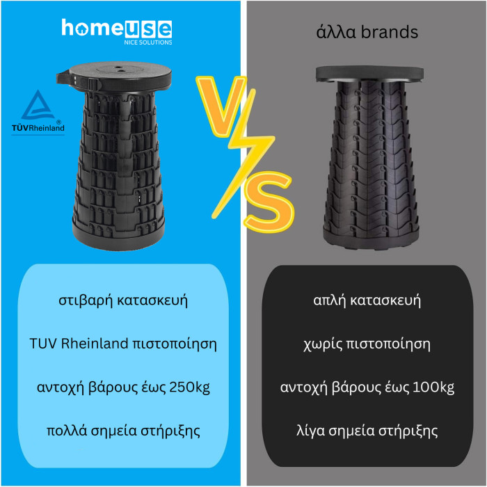 HOME USE πτυσσόμενο καρεκλάκι HUH-0230, αντοχή έως 250kg, 25.5x45cm, μαύρο