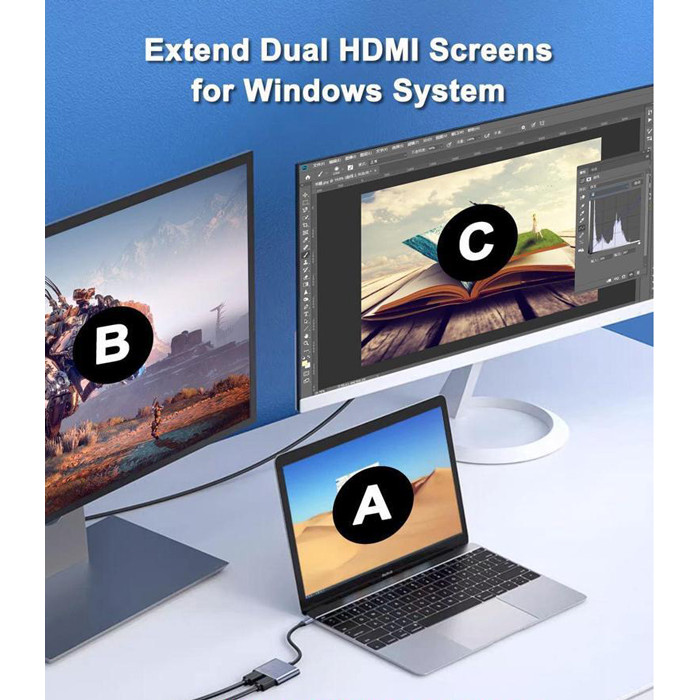 Υποστηρίζει επέκταση οθόνης (MST λειτουργία) χάρη στην οποία, καθιστά δυνατή, την ταυτόχρονη σύνδεση οθονών από τις θύρες HDMI.