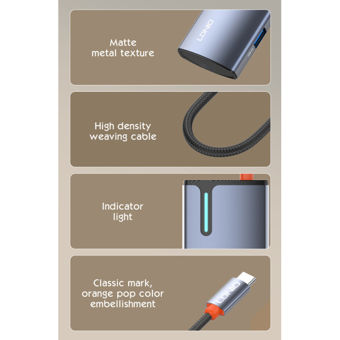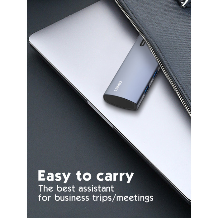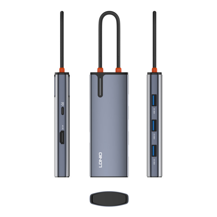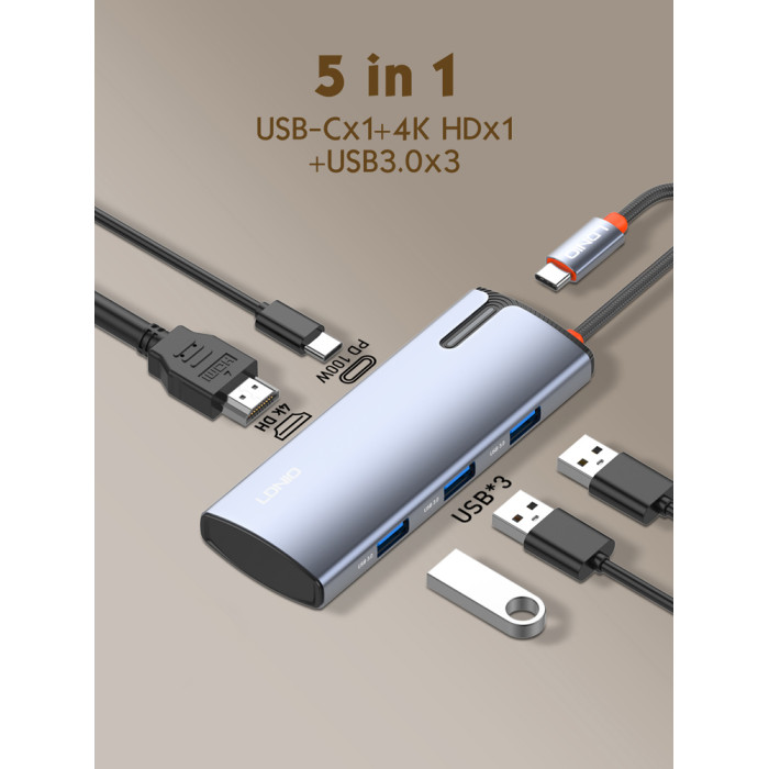 LDNIO docking station DS-15H, 5 θυρών, USB-C σύνδεση, 4K, 100W PD, γκρι