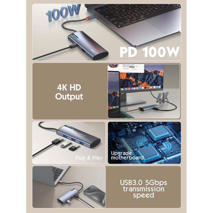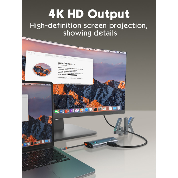 Μέσω της θύρας USB-C PD μπορείτε να φορτίσετε το laptop σας με απόδοση έως 100W ενώ μέσω της θύρας HDMI σας επιτρέπει την σύνδεση οθόνης με ανάλυση έως 4K.