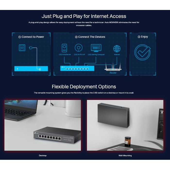 Interface: 8x 100Mbps/1Gbps/2.5Gbp Ports, Auto-Negotiation, Auto-MDI/MDIX