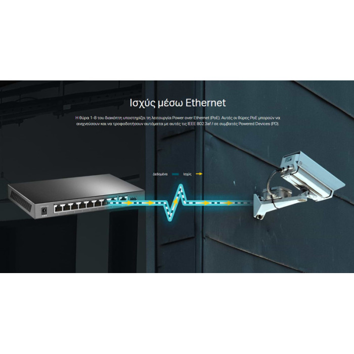 -8x θύρες PoE+, δεδομένα & ισχύς μπορούν να μεταφερθούν με ένα μόνο καλώδιο