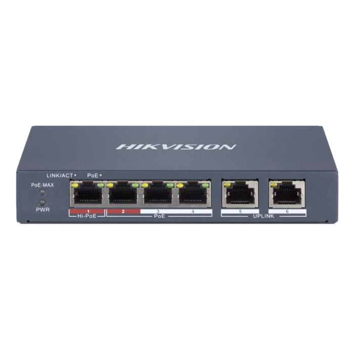 HIKVISION Managed switch DS-3E1106HP-EI, 4x PoE & 2x RJ45 ports, 100Mbps