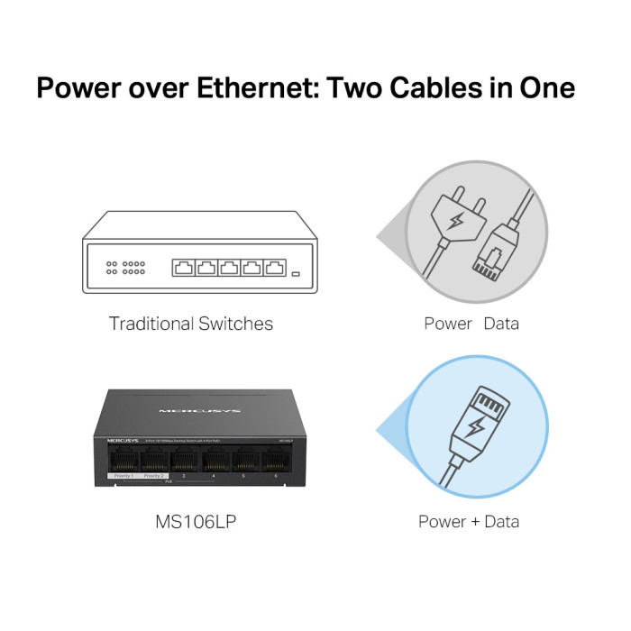 MERCUSYS Desktop Switch MS106LP, 6x 10/100 Mbps, PoE+, Ver. 1.0