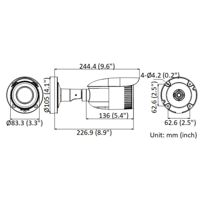 Camera Dimension: Φ 105 mm ? 244.4 mm