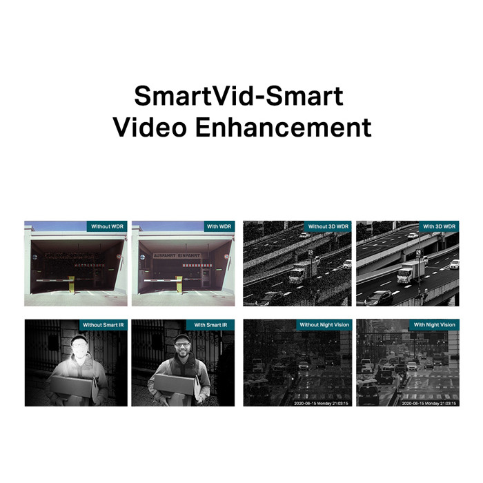 -Έξυπνη βελτίωση βίντεο: Οι τεχνολογίες επαγγελματικών προδιαγραφών όπως Smart IR, WDR, 3D DNR και Night Vision της VIGI, επεξεργάζονται το βίντεο για να βελτιώσουν σημαντικά την ποιότητά του.