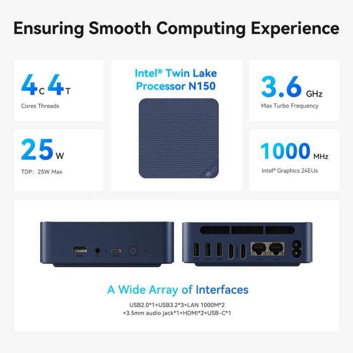 -Επεξεργαστής: Intel Twin Lake N150 (Max turbo frequency: 3.6GHz, 4C/4T, 6MB L3 Cache)