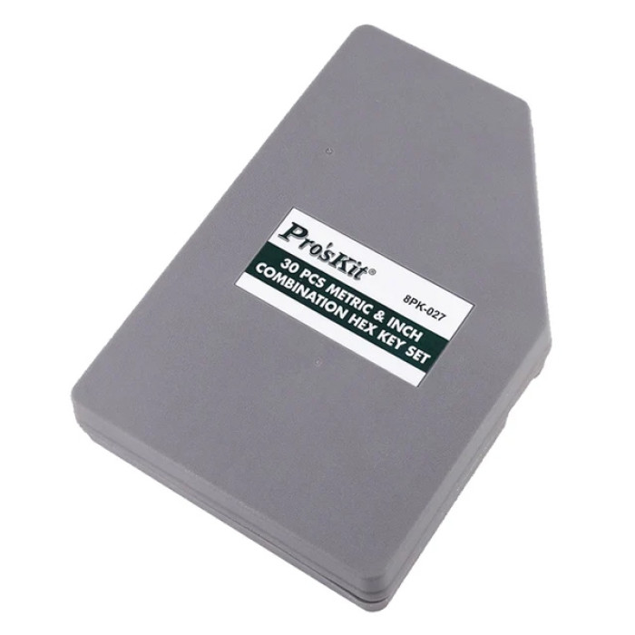 Σετ κλειδιών της PROSKIT το οποίο αποτελείται από 30 εξάγωνα κλειδιά τύπου Allen. Είναι τοποθετημένα μέσα σε πλαστική θήκη, για την εύκολη τακτοποίηση και μεταφορά τους.
