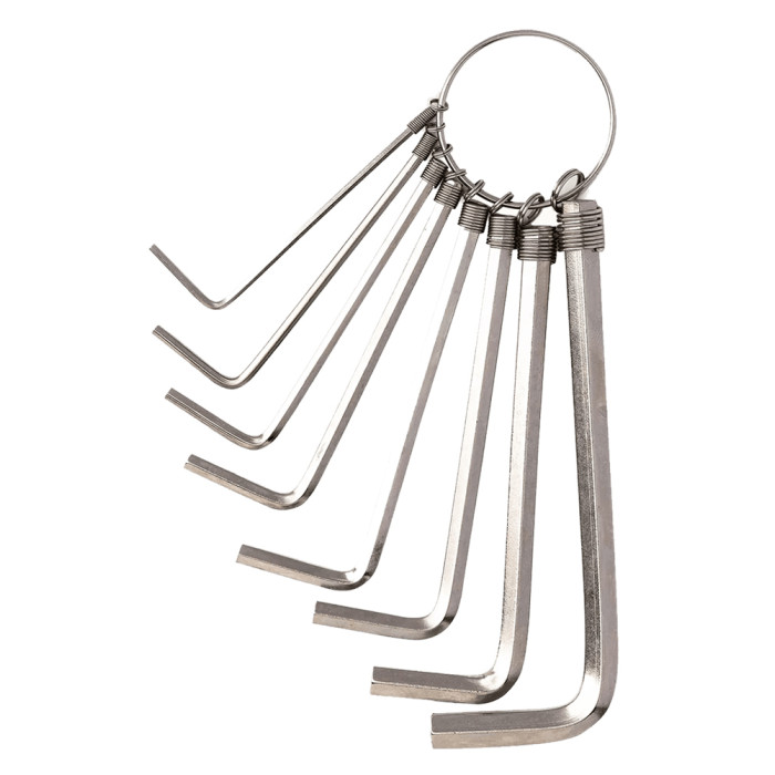Σετ της Deli που αποτελείται από 8 εξάγωνα κλειδιά τύπου Allen. Είναι τοποθετημένα σε κρίκο για την εύκολη τοποθέτηση τους σε κλειδιά.