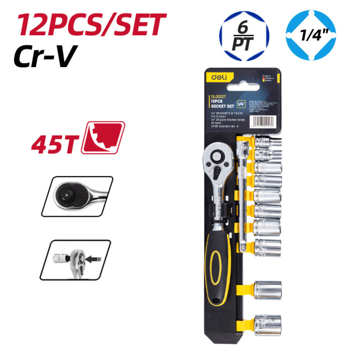 DELI σετ καστάνια με καρυδάκια DL0012T, 45 δόντια, 1/4", 150mm, 12τμχ