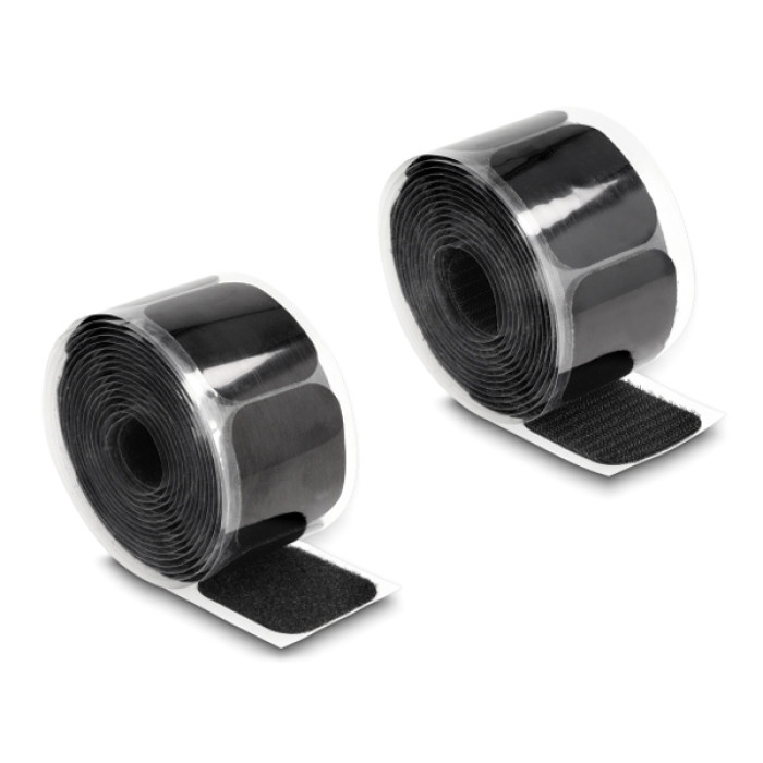 DELOCK αυτοκόλλητα τύπου Velcro 19106 σε ρολό 3m, 45x50mm, μαύρο