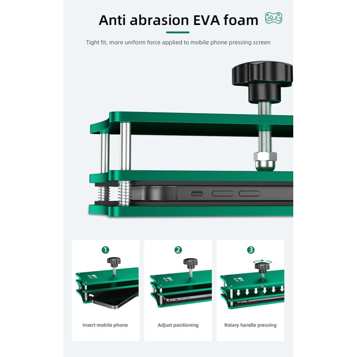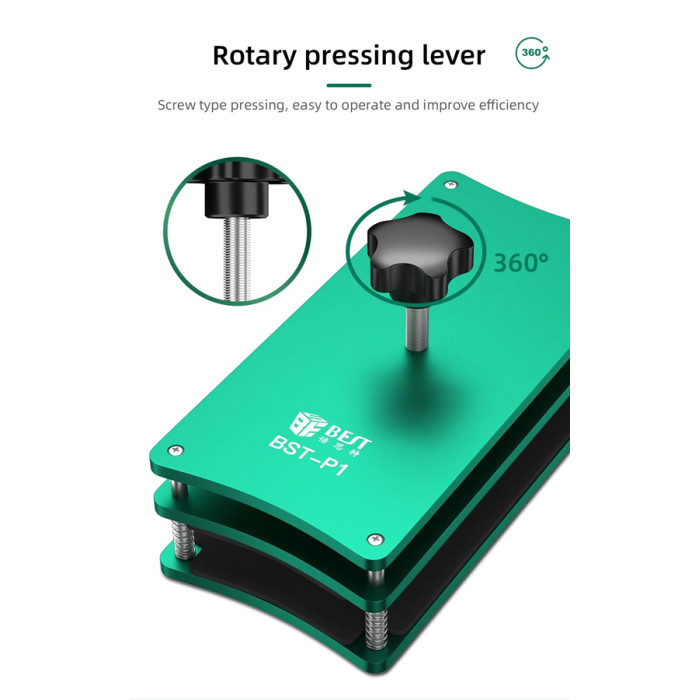 Σφιγκτήρας κόλλησης της Best για την επισκευή οθόνης κινητού. Διαθέτει μεγάλη επιφάνεια για οθόνες έως και 8.5" και αντικραδασμικό στρώμα από υλικό EVA, για την προστασία του κινητού.