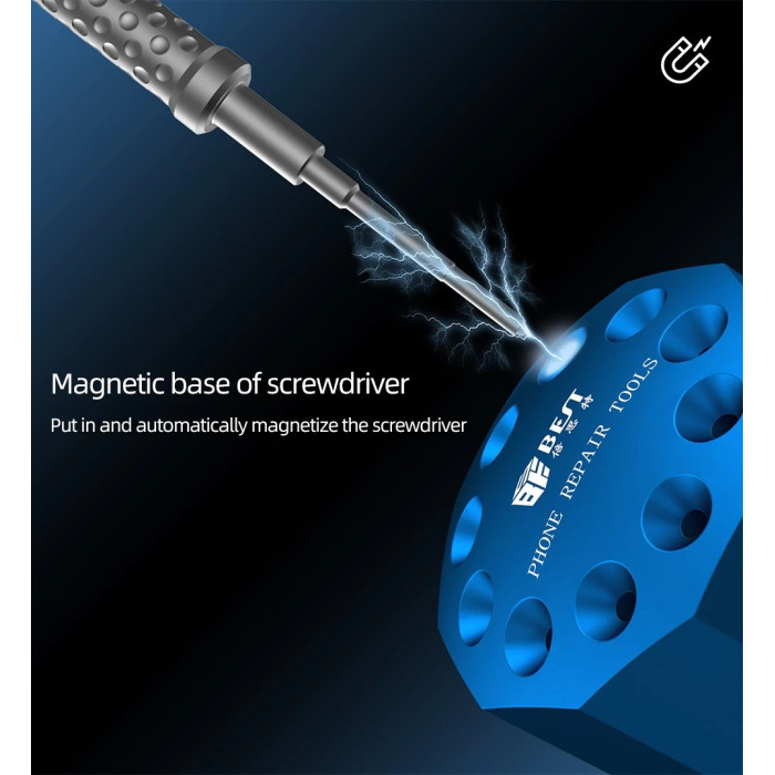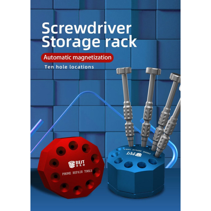 Στιβαρή βάση κατσαβιδιών της Best, 10 θέσεων, με μαγνήτη για τον μαγνητισμό των κατσαβιδιών.