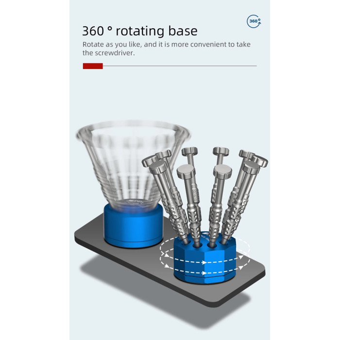 Η βάση είναι περιστρεφόμενη για άμεση πρόσβαση σε όλα τα κατσαβίδια.