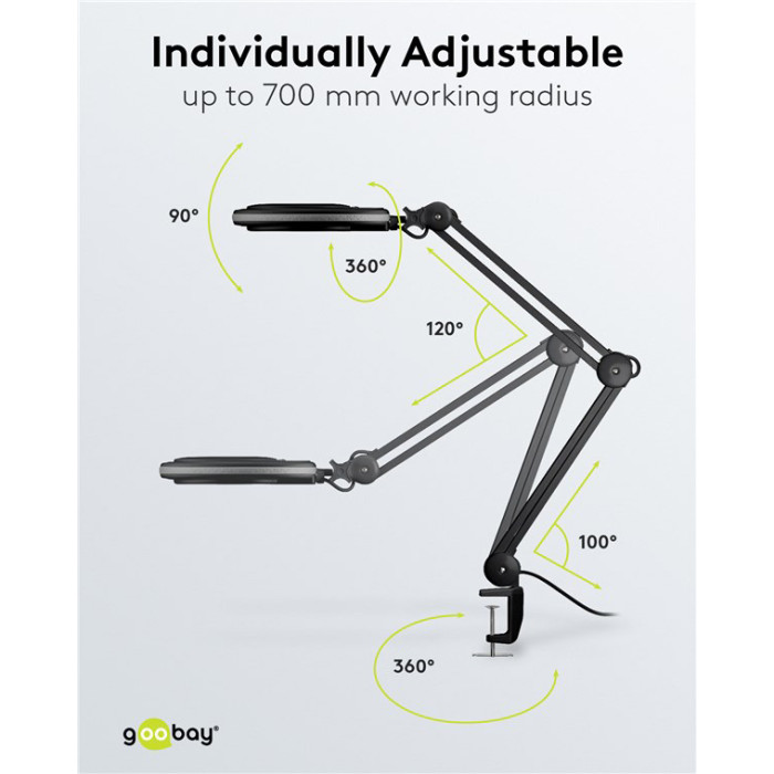 Είναι ιδανικός για εργασίες ακριβείας όπως συγκόλληση, χειροτεχνία κ.α. αλλά και ως βοήθημα για ανάγνωση βιβλίων. Η τοποθέτηση του γίνεται εύκολα στην επιφάνεια πάγκου εργασίας ή γραφείου με σφιγκτήρα.