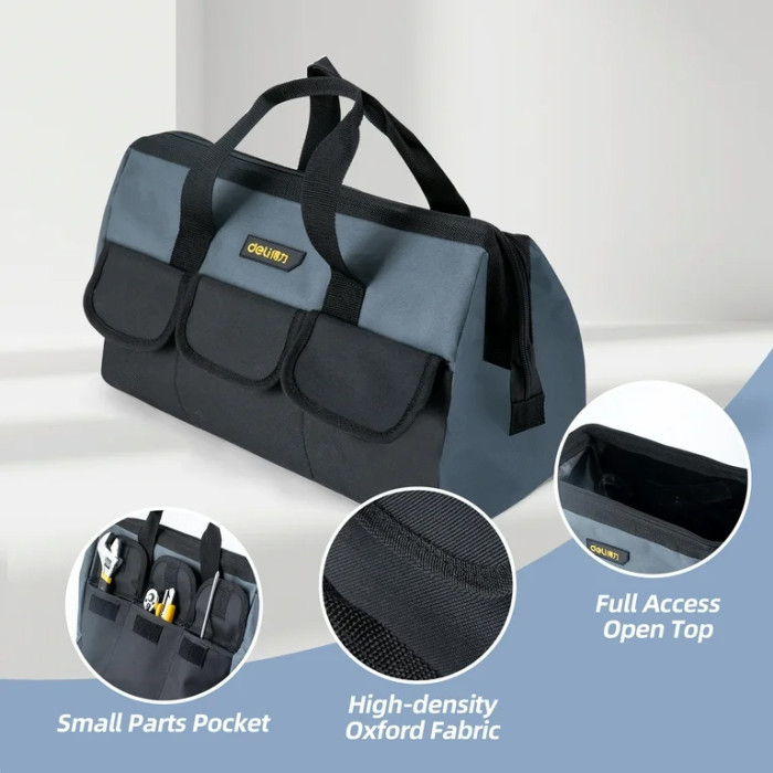 Τσάντα χειρός πολλαπλών θέσεων της Deli, ιδανική για την αποθήκευση διαφόρων εργαλείων.