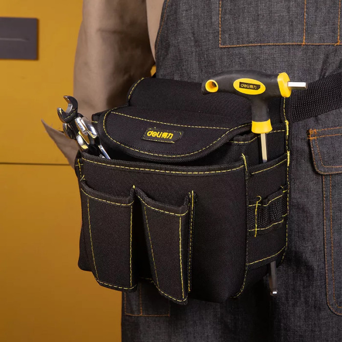 Εργαλειοθήκη μέσης πολλαπλών θέσεων της Deli, ιδανική για την αποθήκευση διαφόρων εργαλείων χειρός.