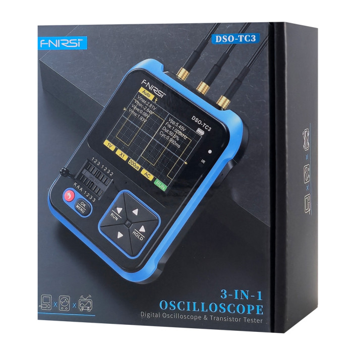 Το DSO-TC3 είναι ένα εξαιρετικά πρακτικό ψηφιακό εργαλείο 3 σε 1 που συνδυάζει τις λειτουργίες ενός παλμογράφου, ενός signal generator και ενός transistor tester.