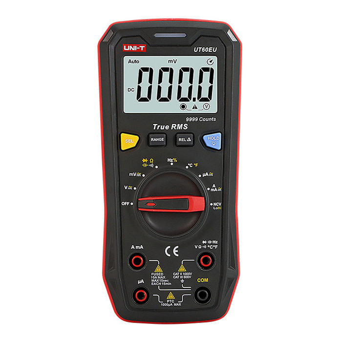 Τα ψηφιακά πολύμετρα της σειράς UT60 προσφέρουν True-RMS μετρήσεις, 9999-count ανάλυση, NCV λειτουργία, και πολλές ακόμη βολικές λειτουργίες που καλύπτουν τις ανάγκες μετρήσεων. Αυτά τα auto-ranged πολύμετρα μπορούν να μετρήσουν έως 1000V AC/DC voltage, 10A AC/DC current και 100MΩ αντίσταση. Εξοπλίζονται με ψηφιακή οθόνη με οπίσθιο φωτισμό που διευκολύνει την χρήση του σε σκοτεινά μέρη. Διαθέτουν CAT II 1000V/CAT III 600V βαθμό ασφαλείας με ανθεκτικό περίβλημα.