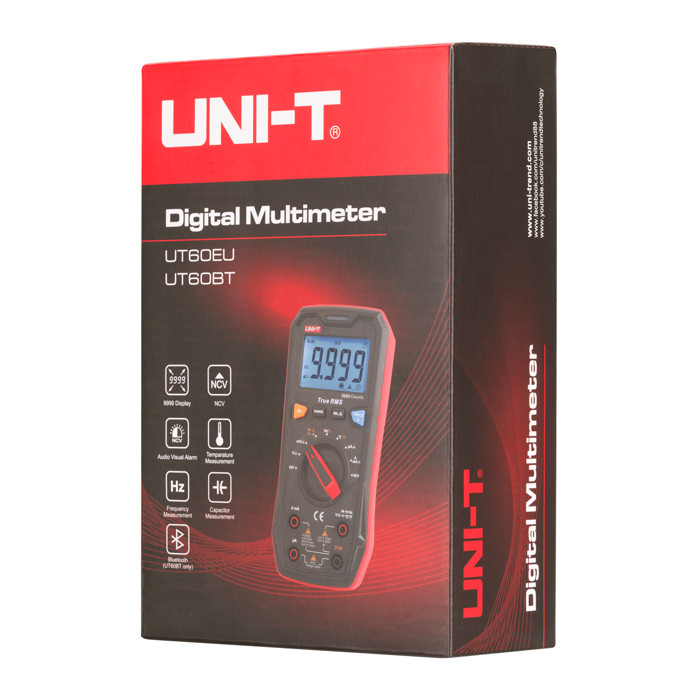 Τα ψηφιακά πολύμετρα της σειράς UT60 προσφέρουν True-RMS μετρήσεις, 9999-count ανάλυση, NCV λειτουργία, και πολλές ακόμη βολικές λειτουργίες που καλύπτουν τις ανάγκες μετρήσεων. Αυτά τα auto-ranged πολύμετρα μπορούν να μετρήσουν έως 1000V AC/DC voltage, 10A AC/DC current και 100MΩ αντίσταση. Εξοπλίζονται με ψηφιακή οθόνη με οπίσθιο φωτισμό που διευκολύνει την χρήση του σε σκοτεινά μέρη. Διαθέτουν CAT II 1000V/CAT III 600V βαθμό ασφαλείας με ανθεκτικό περίβλημα.