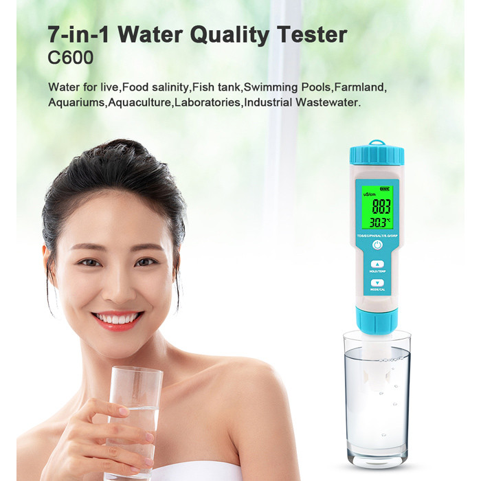 Το C-600 είναι tester ποιότητας νερού για την μέτρηση TDS, EC, PH, αλατιού, S.G, ORP και θερμοκρασίας. Είναι ιδανικό για τον έλεγχο του νερό σε πισίνες, υδρομασάζ, εργαστήρια, ενυδρεία, νερό βρύσης κ.λπ.