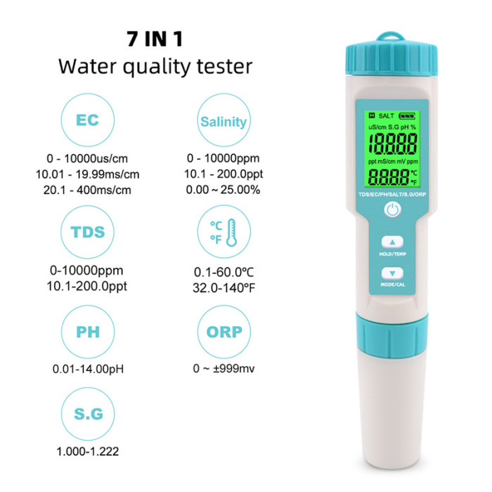 -μέτρηση TDS, EC, PH, αλατιού, S.G, ORP & θερμοκρασίας