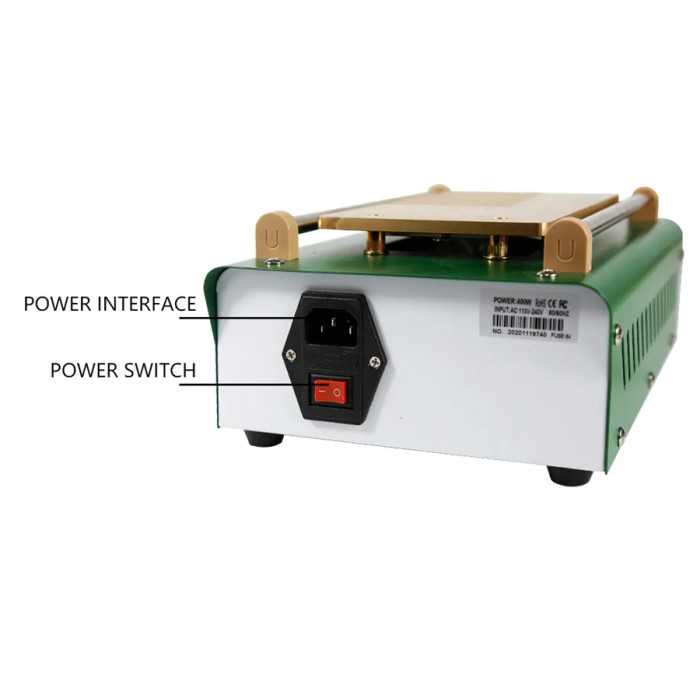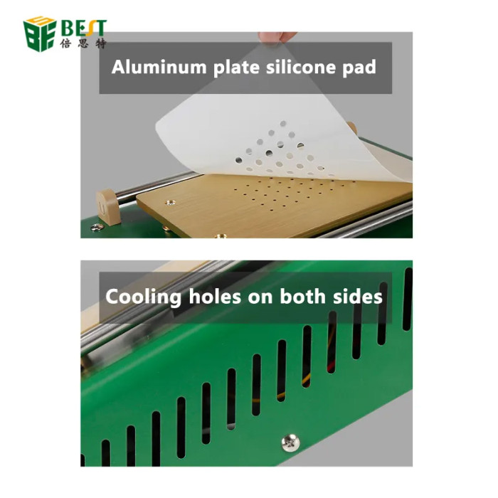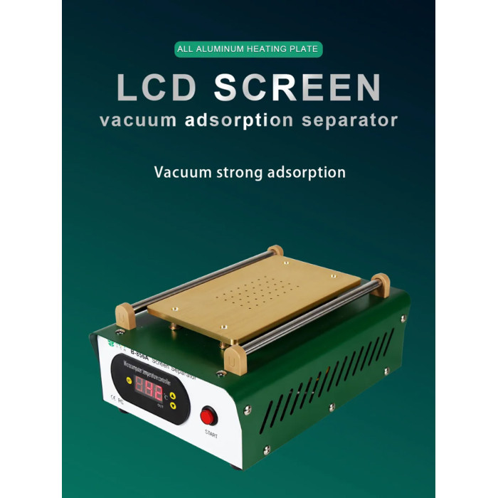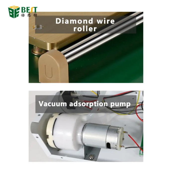 Μηχάνημα διαχωρισμού LCD οθόνης smartphone από την Best. Διαθέτει θερμοστάτη για την ρύθμιση της θερμοκρασίας και οθόνη για την παρακολούθηση της σε πραγματικό χρόνο. Υιοθετεί την τεχνική του κενού αέρα, μέσω της αντλίας που έχει, κάτι το οποίο κάνει πιο εύκολη την χρήση του καθότι δεν χρησιμοποιεί σφιγκτήρες για την σταθεροποίηση της οθόνης και την αφαίρεση της.