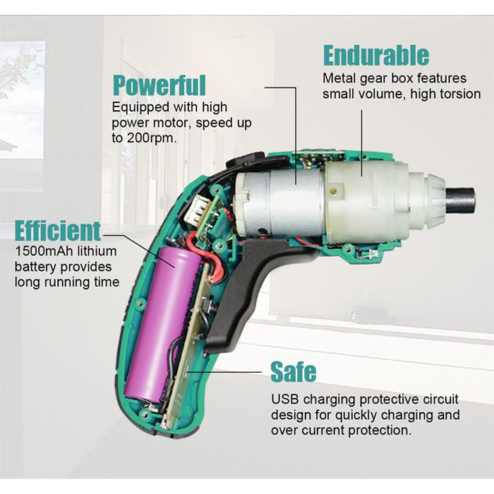 Στη συσκευασία συμπεριλαμβάνονται 4 μύτες κατσαβιδιού και καλώδιο φόρτισης.