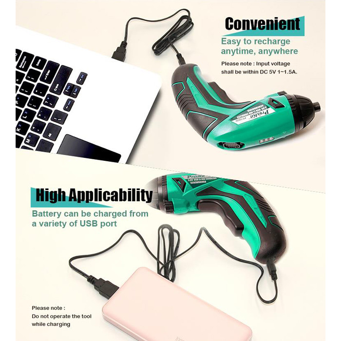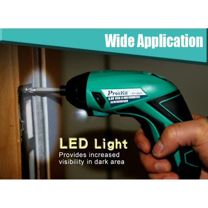 PROSKIT ηλεκτρικό κατσαβίδι PT-1362U με 4 μύτες, LED φακός, 1500mAh