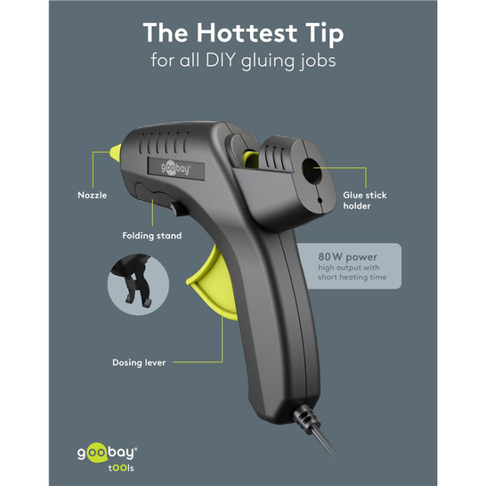 GOOBAY πιστόλι θερμοκόλλησης σιλικόνης 77824 με 2x ράβδους σιλικόνης 11mm, 80W, μαύρο