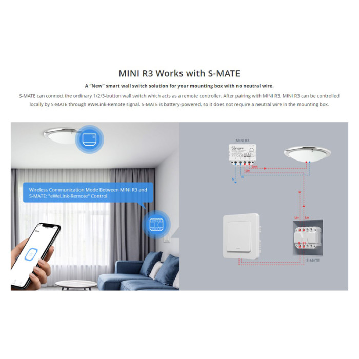 Ο διακόπτης S-MATE είναι μια συσκευή, που σε συνδυασμό με τον smart διακόπτη MINIR3 (πωλείται ξεχωριστά), σας βοηθά να μετατρέψετε το σπίτι σας σε "έξυπνο σπίτι".