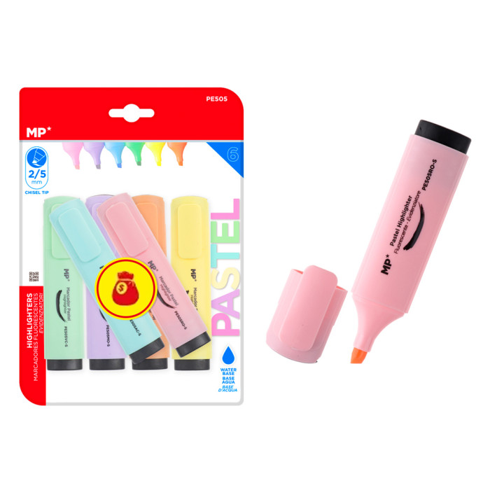 MP σετ μαρκαδόροι υπογράμμισης PE505, πάχος μύτης 2-5mm, διάφορα χρώματα, 6τμχ