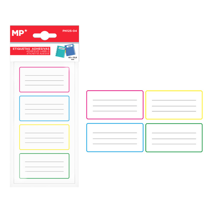 MP αυτοκόλλητες ετικέτες τετραδίων PN125-04, 65x32.6mm, 4 χρώματα, 24τμχ