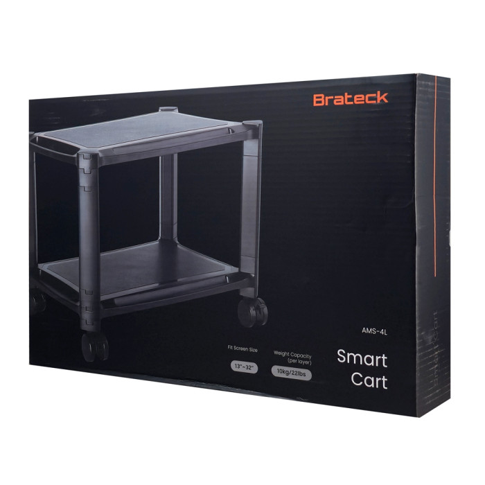 BRATECK ραφιέρα δαπέδου AMS-4L με ροδάκια, 2 ράφια, 50x33x37cm, έως 10kg, μαύρη