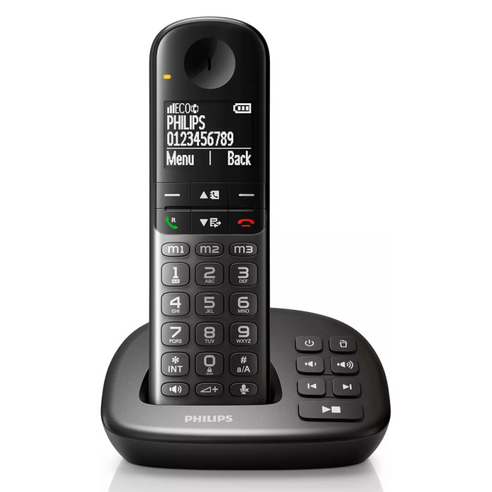 PHILIPS ασύρματο τηλέφωνο XL4951DS/34, ελληνικό μενού, τηλεφωνητής, μαύρο