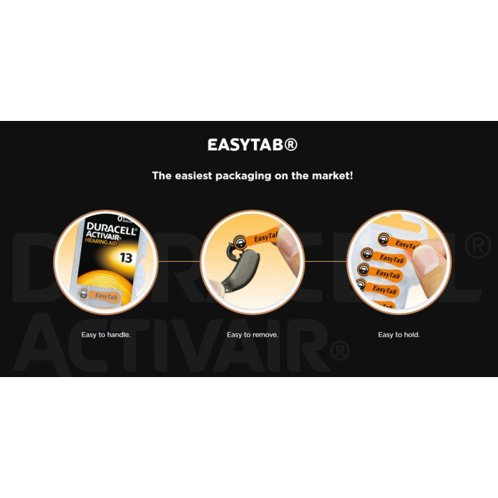 Ένα αξιοσημείωτο χαρακτηριστικό της σειράς Activair Easy Tab είναι ο σχεδιασμός τους με εύκολες και μεγάλες ετικέτες (easy tabs), που διευκολύνουν το άνοιγμα και την τοποθέτηση των μπαταριών, καθιστώντας τη χρήση τους πιο βολική.