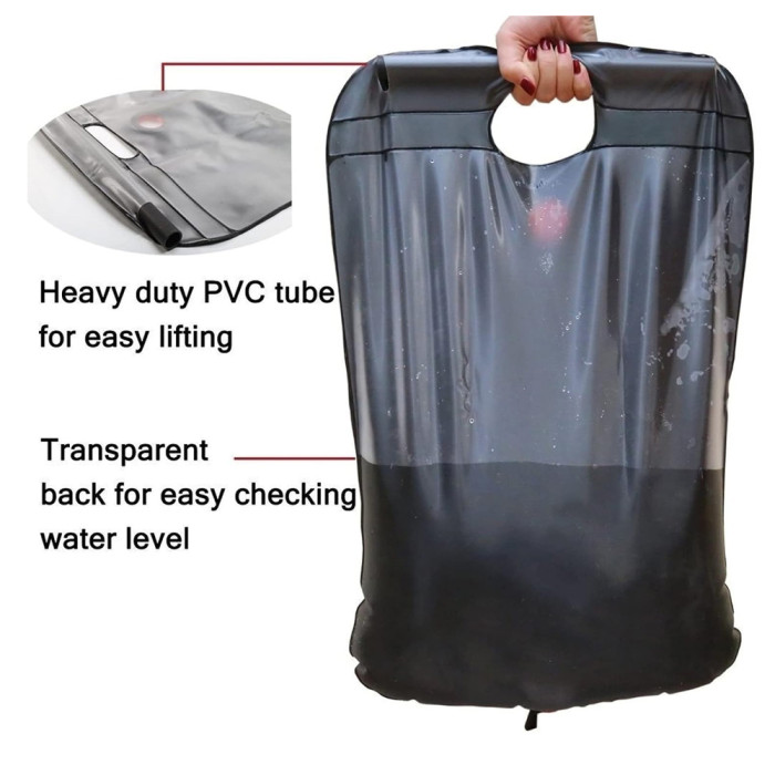 Πρακτική φορητή ντουζιέρα ιδανική για camping, πεζοπορία ή άλλες υπαίθριες δραστηριότητες. Διαθέτει μεγάλη χωρητικότητα νερού 20 λίτρων ενώ χάρη στο υλικό κατασκευής της, το νερό θερμαίνεται χρησιμοποιώντας την ηλιακή ενέργεια.