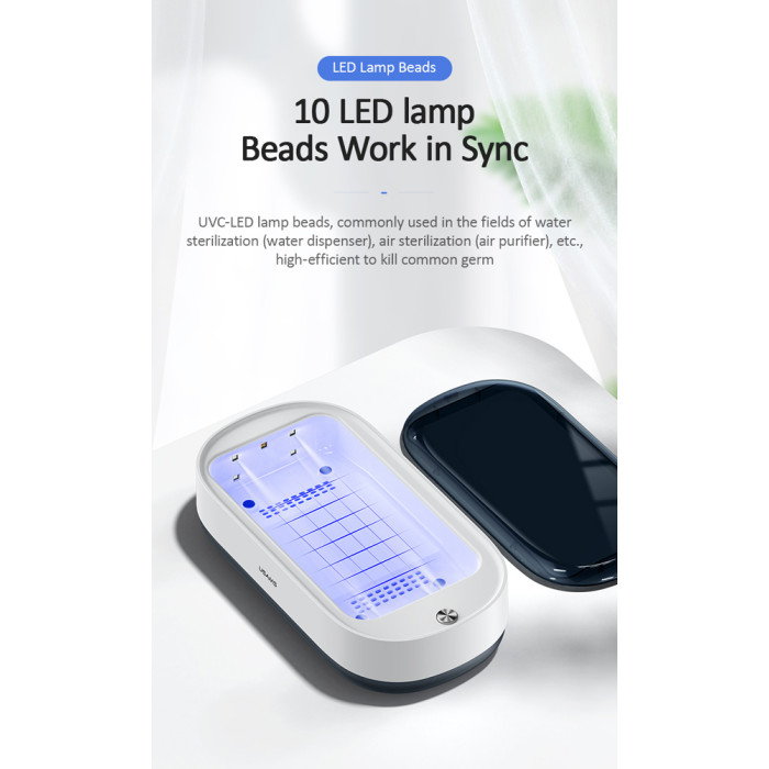 UV Αποστειρωτής κινητών τηλεφώνων αλλά και άλλων, μικρών αντικειμένων που εξουδετερώνει σε 5 λεπτά το 99.9% των βακτηρίων. Τροφοδοτείται μέσω USB Type-C θύρας. Στη συσκευασία συμπεριλαμβάνεται καλώδιο τροφοδοσίας.