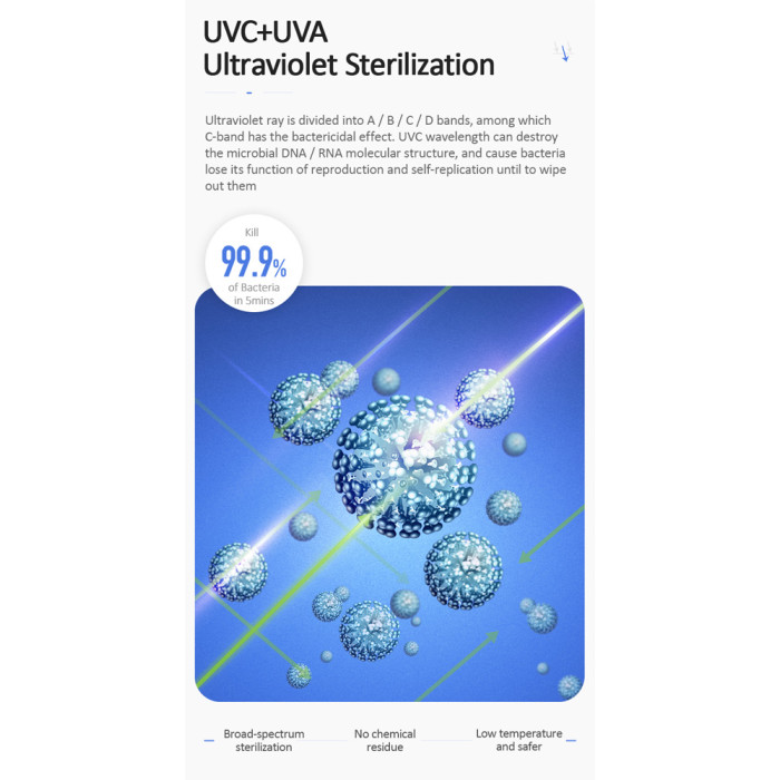 -Αποστειρώνει το 99,9% των βακτηρίων