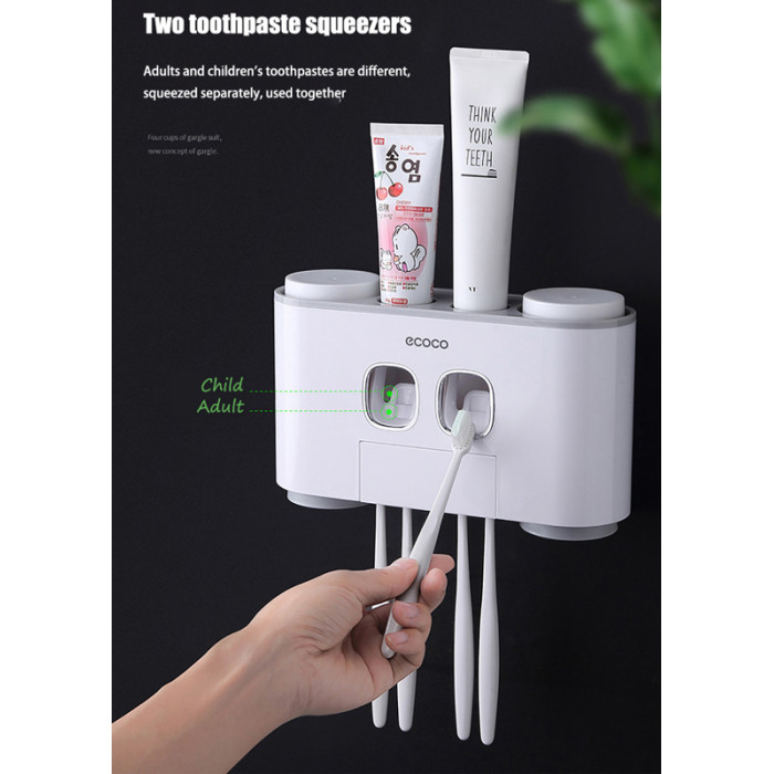 ECOCO Διανεμητής οδοντόκρεμας με βάσεις οδοντόβουρτσας και ποτήρια E1802