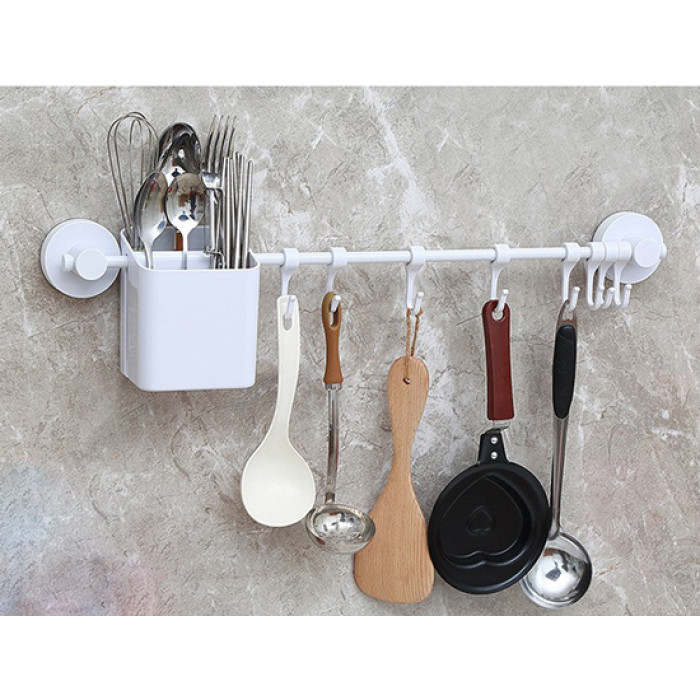 Θήκη της Ecoco με στήριξη σε κρεμάστρα κουζίνας. Μπορεί να τοποθετηθεί εύκολα στην κρεμάστρα χωρίς την χρήση εργαλείων ως έξτρα θήκη για κουταλιά, πιρούνια ή άλλα παρόμοια σκεύη κουζίνας. Διαθέτει σχεδιασμό με αγωγούς αποστράγγισης στο κάτω μέρος της θήκης ενώ το συνολικό βάρος αντοχής της είναι 5kg.