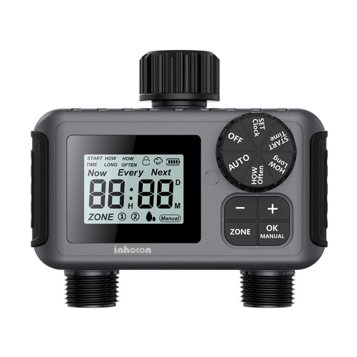 Ψηφιακός προγραμματιστής ποτίσματος της Inhocon, ιδανικός για εργασίες που σχετίζονται με το πότισμα και την άρδευση των φυτών στον κήπο.