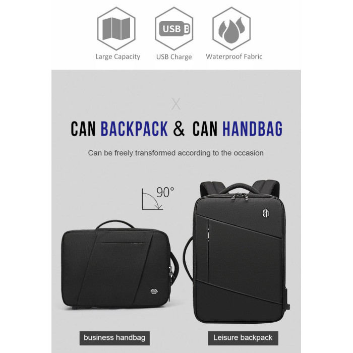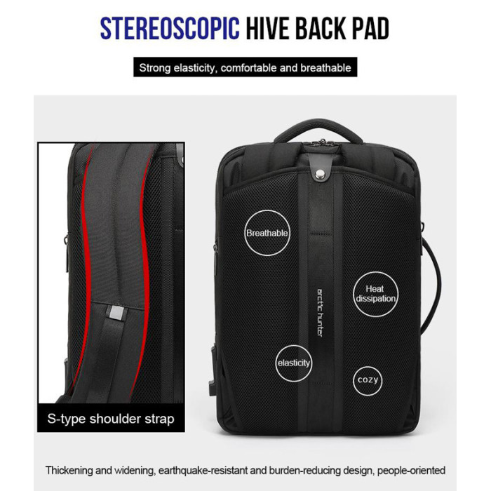 ARCTIC HUNTER τσάντα πλάτης B00345 με θήκη laptop 15.6", USB, 19-32L, μαύρη