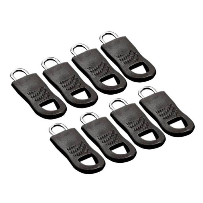 Σετ ανταλλακτικά γατζάκια για φερμουάρ, ιδανικά για την επιδιόρθωση σπασμένων φερμουάρ σε ρούχα, τσάντες, βαλίτσες κ.α. Το σετ αποτελείται από 8 γατζάκια.