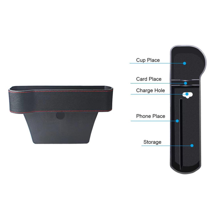 Σετ δύο θηκών αυτοκινήτου οι οποίες τοποθετούνται πολύ εύκολα μεταξύ των μπροστινών καθισμάτων του αυτοκινήτου και της κεντρικής κονσόλας. Είναι ιδιαίτερα εύχρηστες και μπορείτε να αποθηκεύετε σε αυτές πληθώρα μικροαντικειμένων ώστε να έχετε εύκολη πρόσβαση σε αυτά αλλά και να μην τα χάνετε. Στο κάτω μέρος διαθέτουν εσοχή για καλώδιο φόρτισης.
