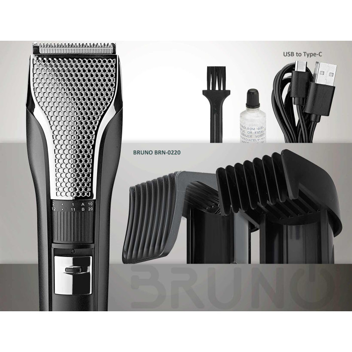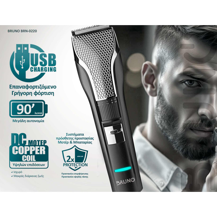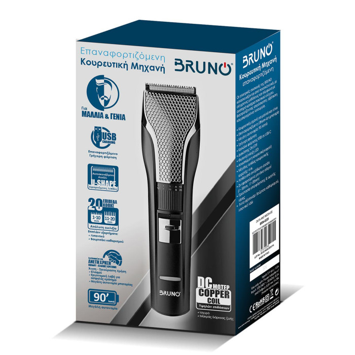 Η επαναφορτιζόμενη κουρευτική μηχανή BRUNO BRN-0220, είναι ιδανική για τριμάρισμα ή κούρεμα σε μαλλιά και γένια.
