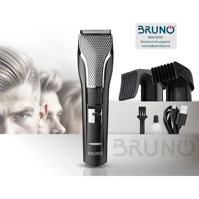 BRUNO κουρευτική μηχανή BRN-0220, επαναφορτιζόμενη, μαύρη